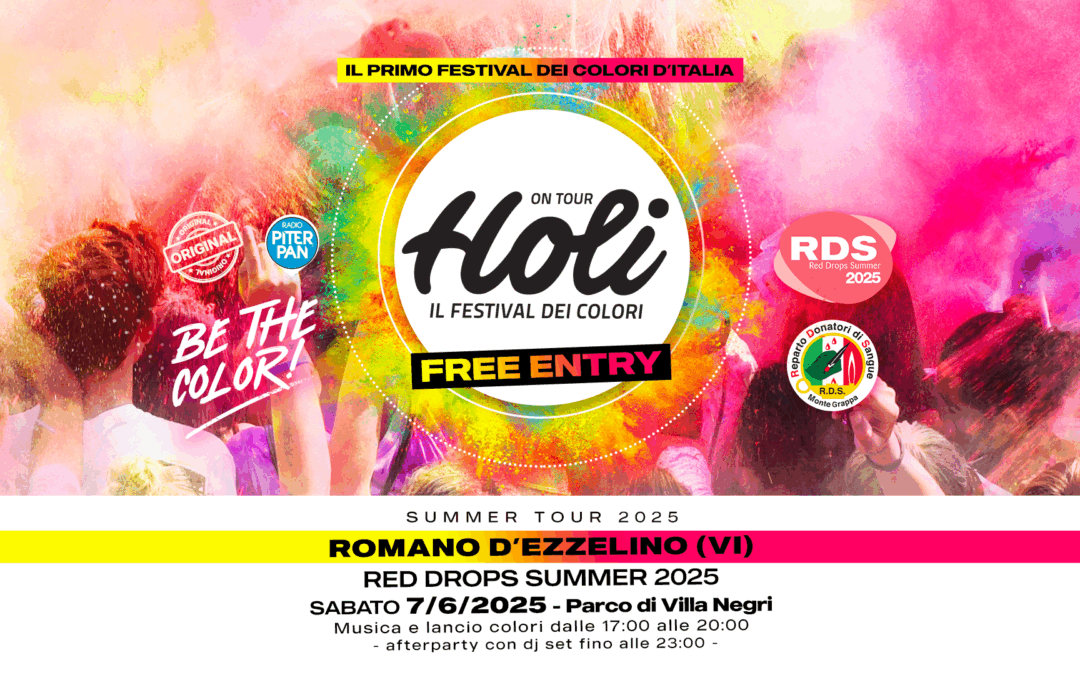 HOLI a Romano d’Ezzelino (VI) Reparto Donatori di Sangue – Montegrappa, con il Patrocinio del Comune di Romano d’Ezzelino e dell’Ulss 7 Pedemontana, presenta: HOLI, IL FESTIVAL DEI COLORI – il primo in Italia All’interno dell’evento RED DROPS SUMMER 2025...